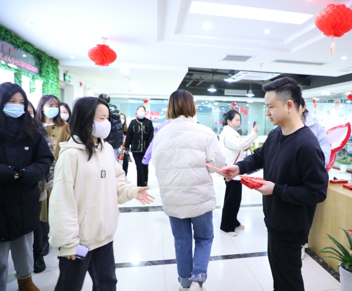 依照火蝠每年慣例,開門紅必備開工紅包,火蝠三城聯動,火蝠電商CEO鐘雨清在武漢總部親自派發,杭州廣州分公司由負責人分別派發,既是將好運財運封入紅包,也將開年祝福傳遞給每一位返工的火蝠人,拿到開工紅包的火蝠人寓意新的一年能大展宏兔。